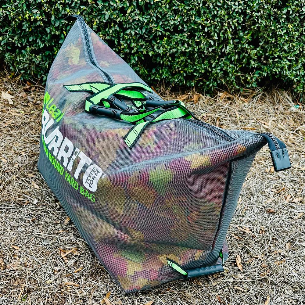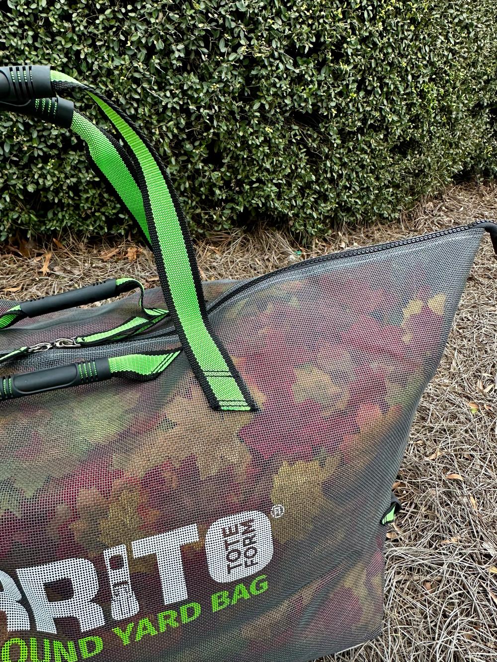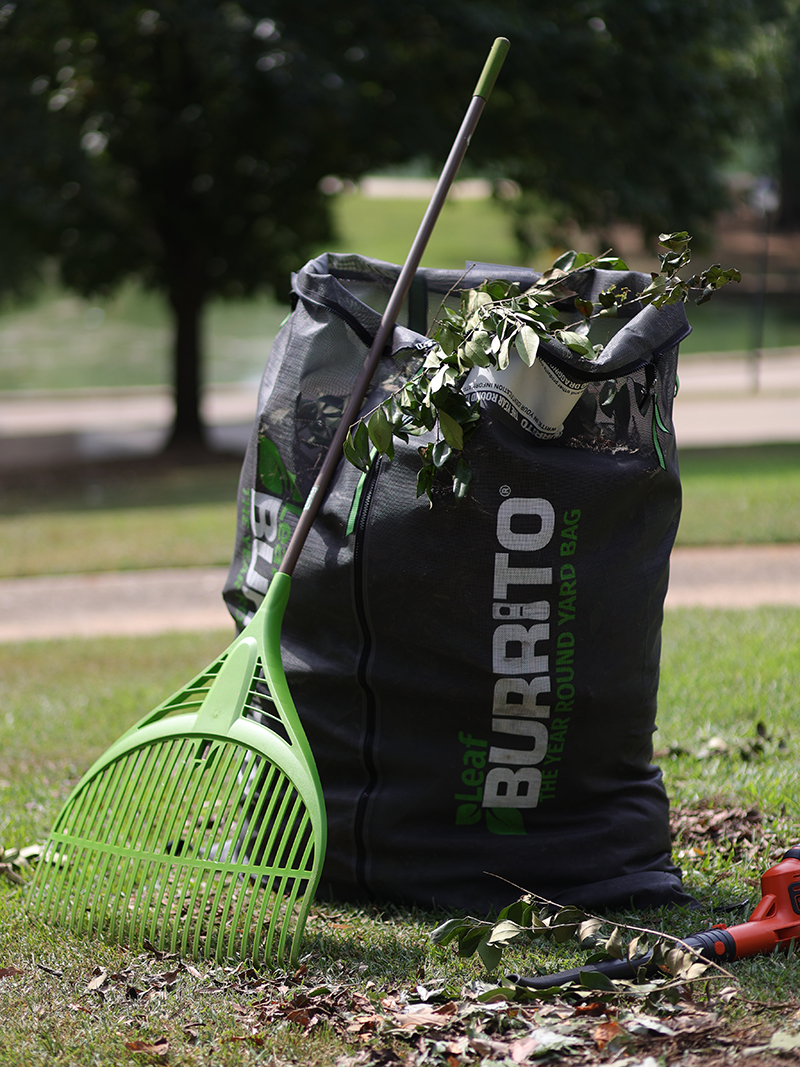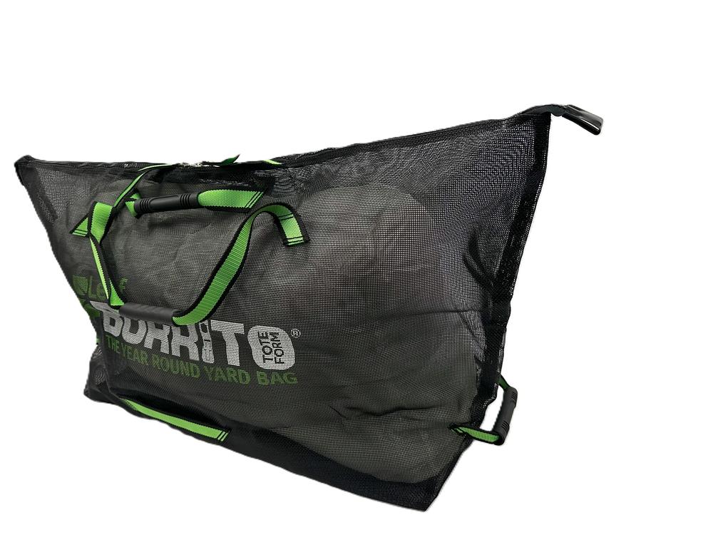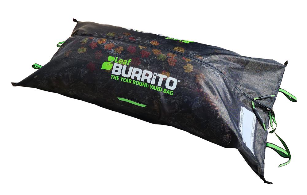 A MUST-HAVE tool for landscapers, arborists, and grounds management crews! The Leaf Burrito® is a patented, revolutionary, year-round, yard debris collection tool that makes the task of collecting and transporting yard waste become incredibly efficient and simple! Grass clippings, weeds, sticks, leaves, hedge clippings, annuals, vegetable vines, small logs, mulch, trees, shrubs, pea gravel, topsoil, pine straw and even trash!