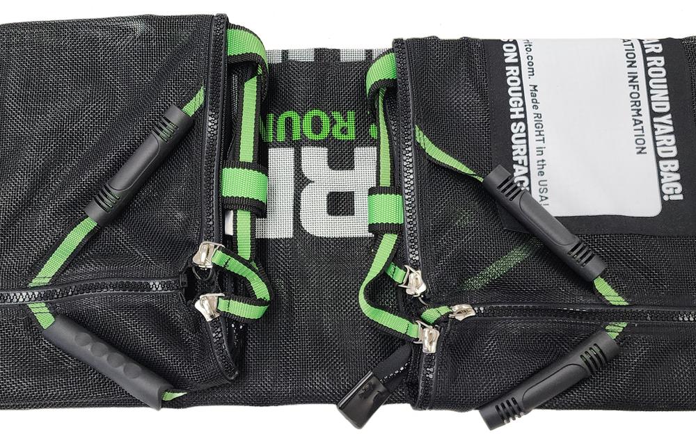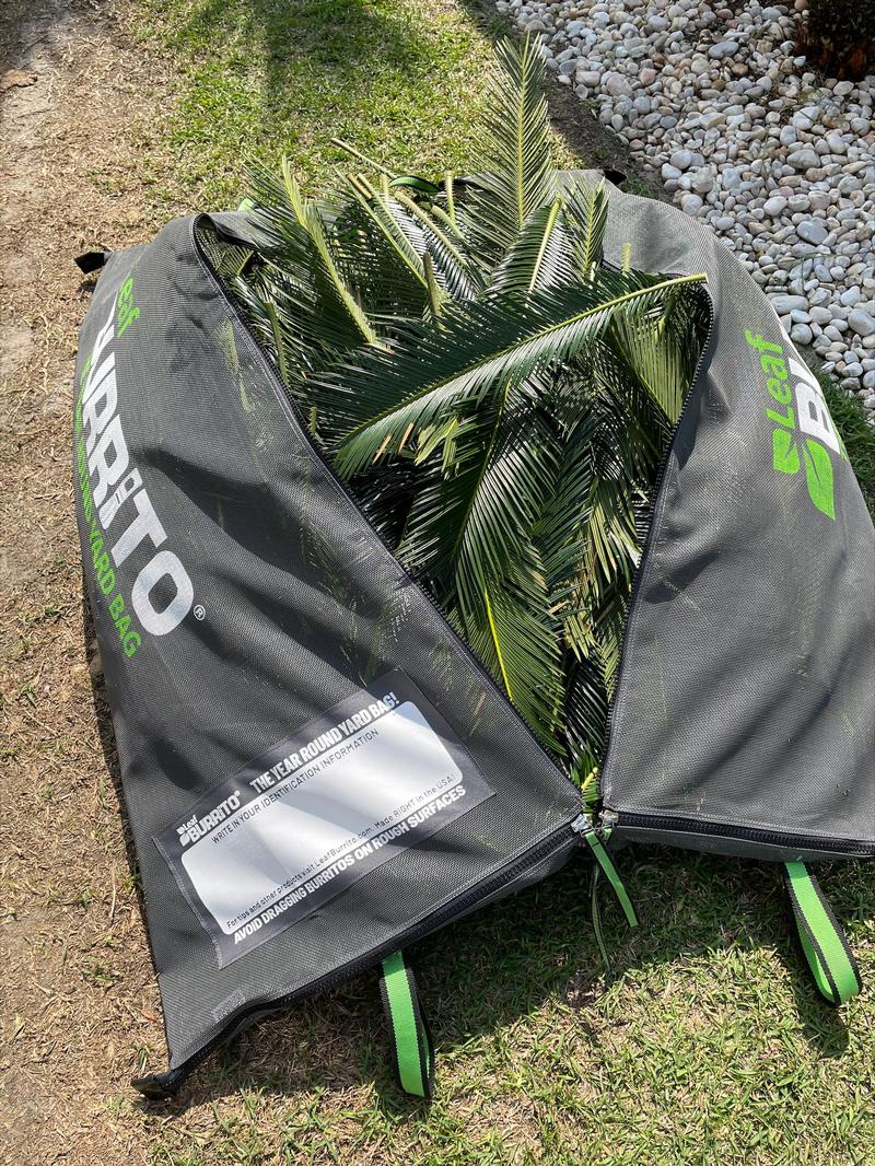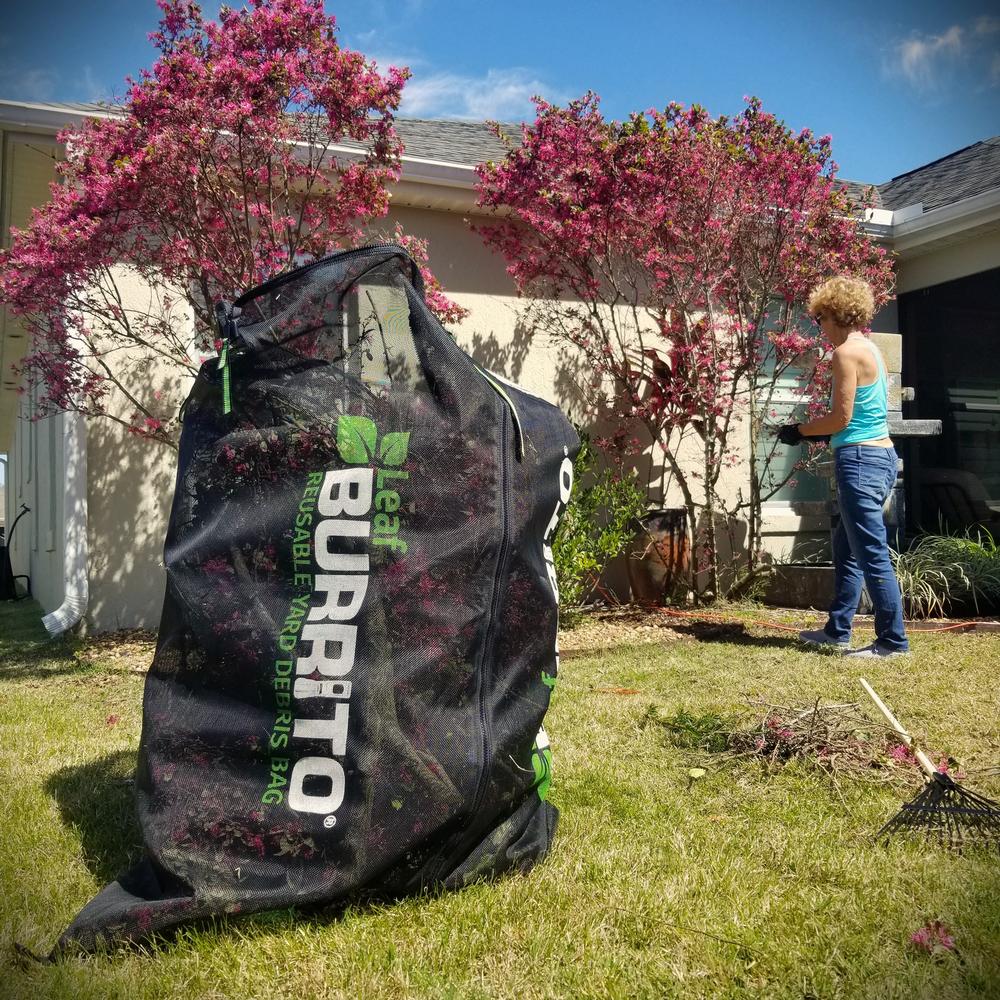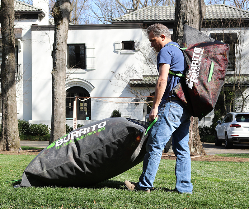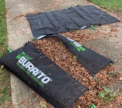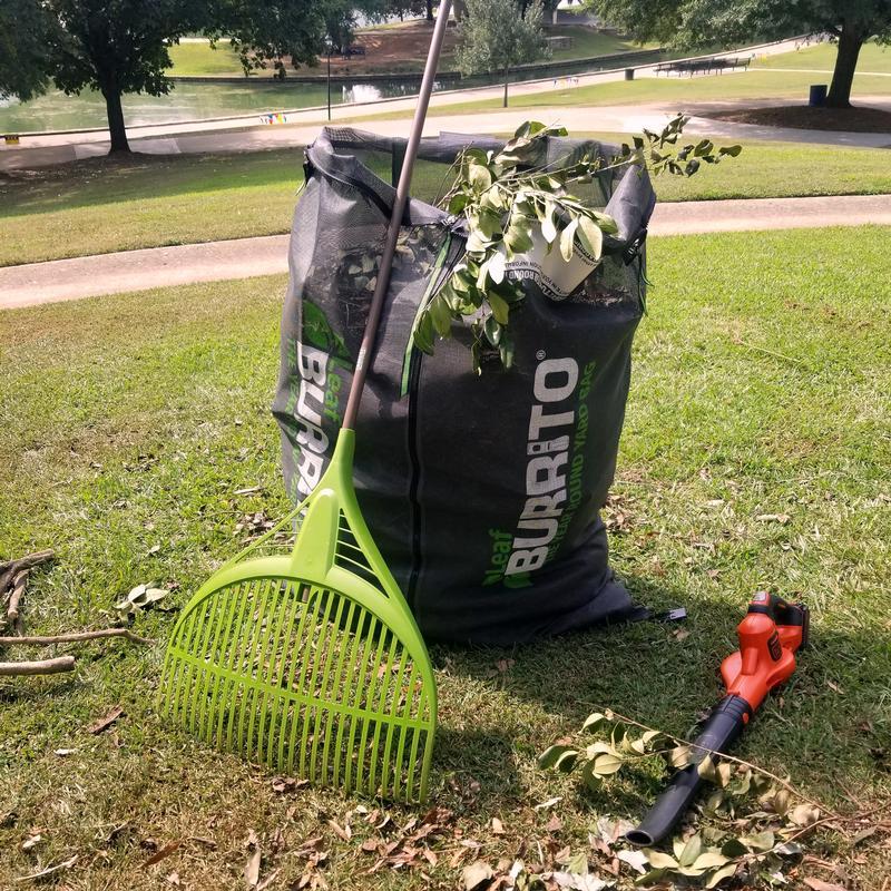 A MUST-HAVE tool for landscapers, arborists, and grounds management crews! The Leaf Burrito® is a patented, revolutionary, year-round, yard debris collection tool that makes the task of collecting and transporting yard waste become incredibly efficient and simple! Grass clippings, weeds, sticks, leaves, hedge clippings, annuals, vegetable vines, small logs, mulch, trees, shrubs, pea gravel, topsoil, pine straw and even trash!
