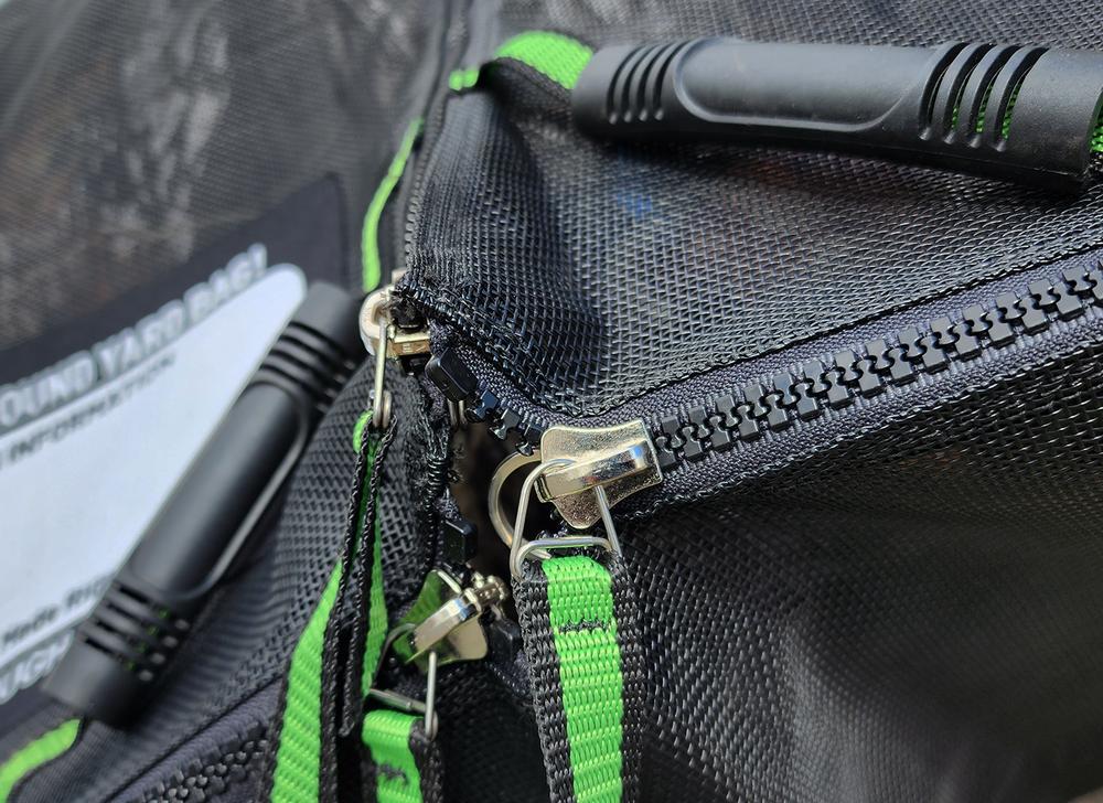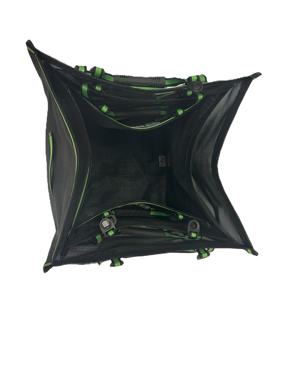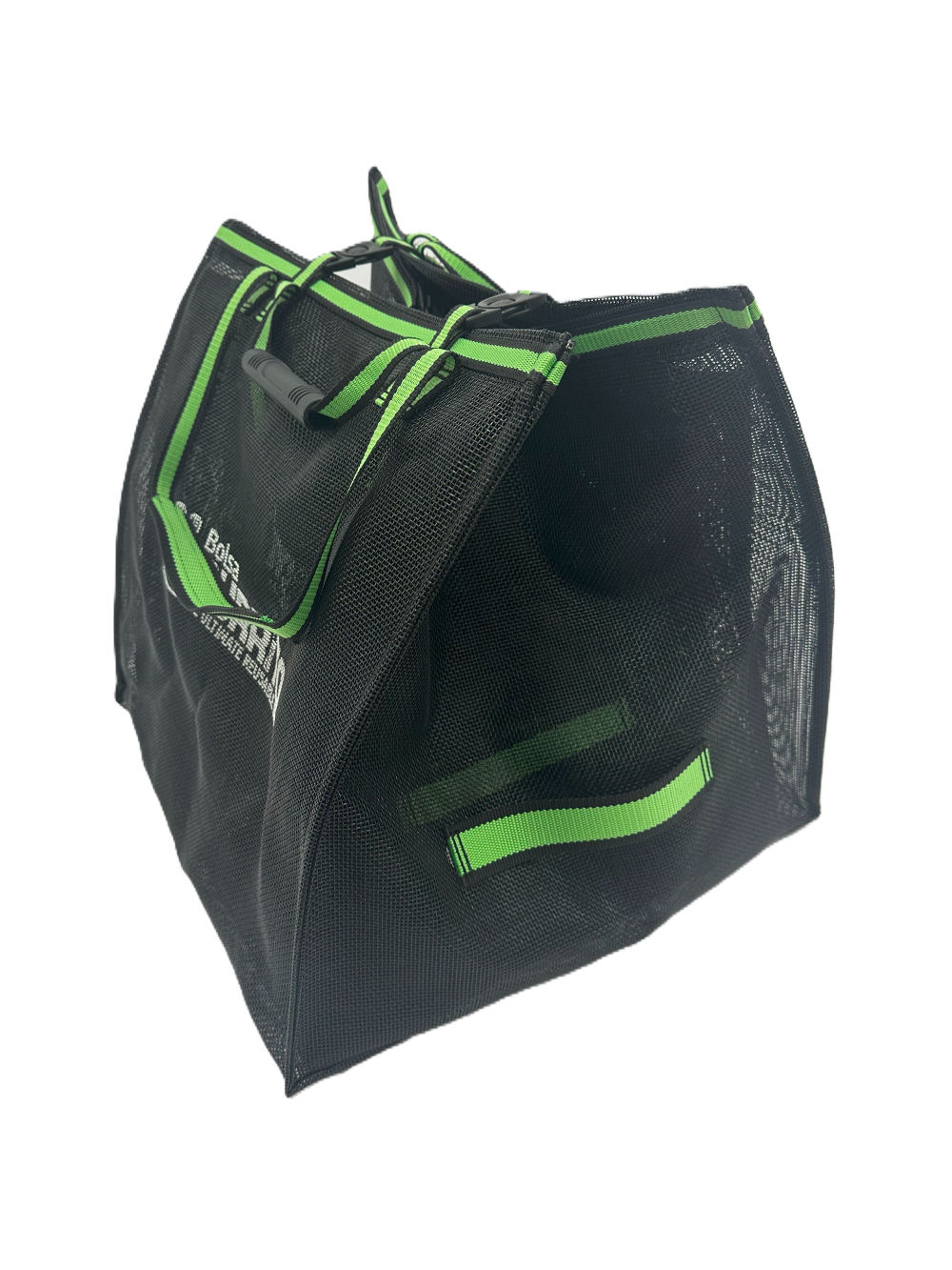 - This 7-foot (7' x 7.33') black mesh version holds 6-12 large lawn bags worth of debris or 3/4 yard of mulch...eliminates single-use bags and short-lived tarps and burlaps!