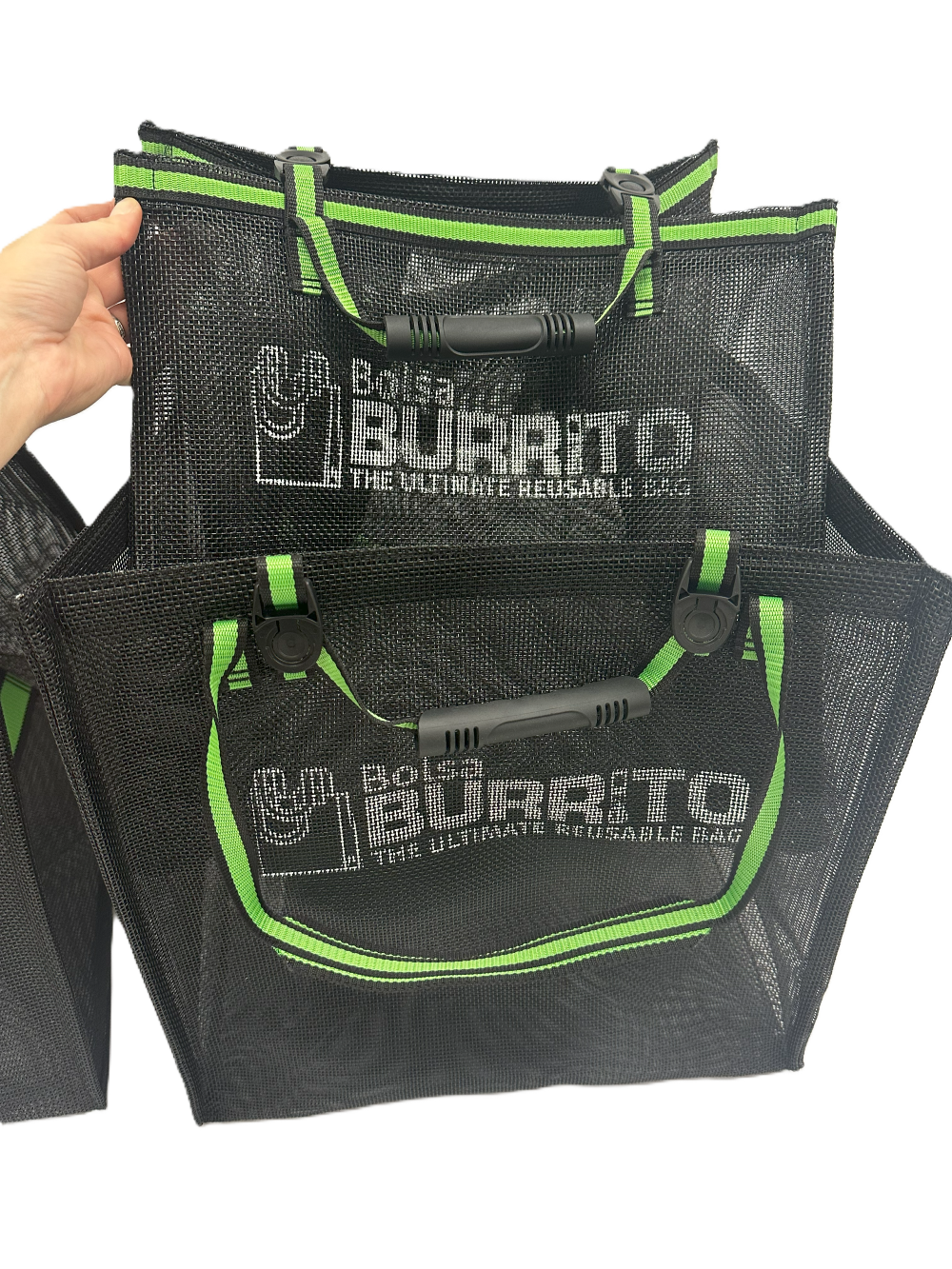 - Our burritos will NOT roll away, blow away, or collect water for mosquitoes like garbage cans and tarps. And they store compactly to the size of a folded beach towel.